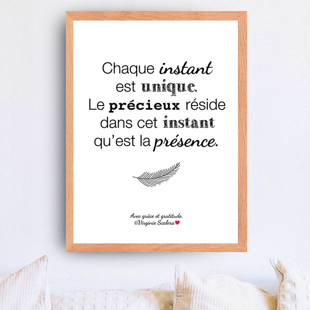 Poster Mantra Citation inspirante " Chaque instant est unique. Le précieux réside dans cet instant qu'est la présence "