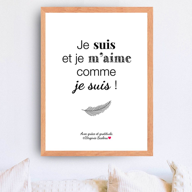 Poster Mantra Citation inspirante " Je suis et je m'aime comme je suis ! " 30x40 cm